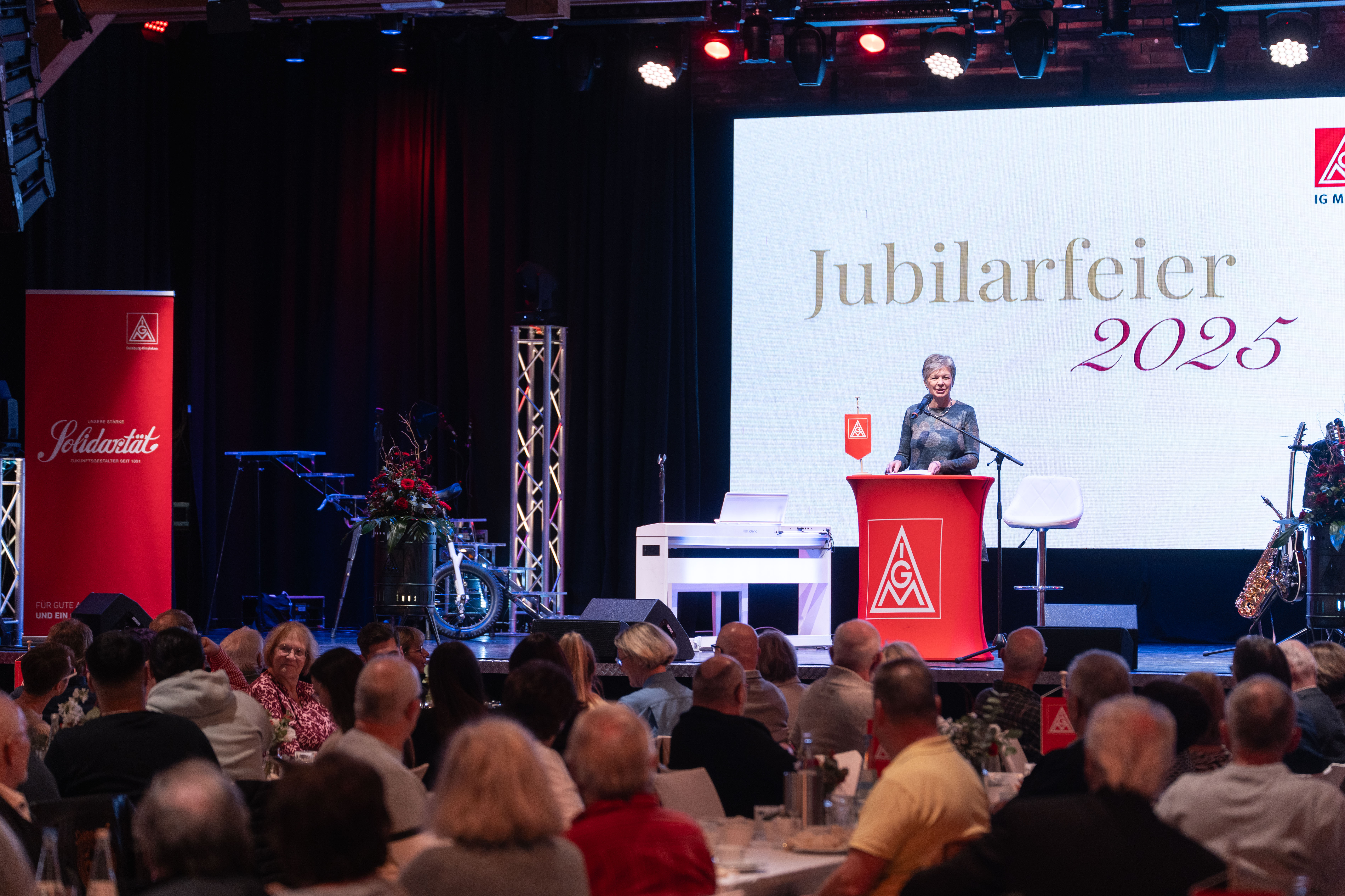 Die Festrede hielt Angelika Nowak, Sprecherin der Seniorenarbeitskreise der IG Metall. Ihre Worte erinnerten an die Kraft gemeinsamer Kämpfe und an die Errungenschaften, die die Jubilare über Jahrzehnte hinweg möglich gemacht haben. Viele der Anwesenden erlebten diesen Moment als Rückblick auf ihr eigenes gewerkschaftliches Wirken.