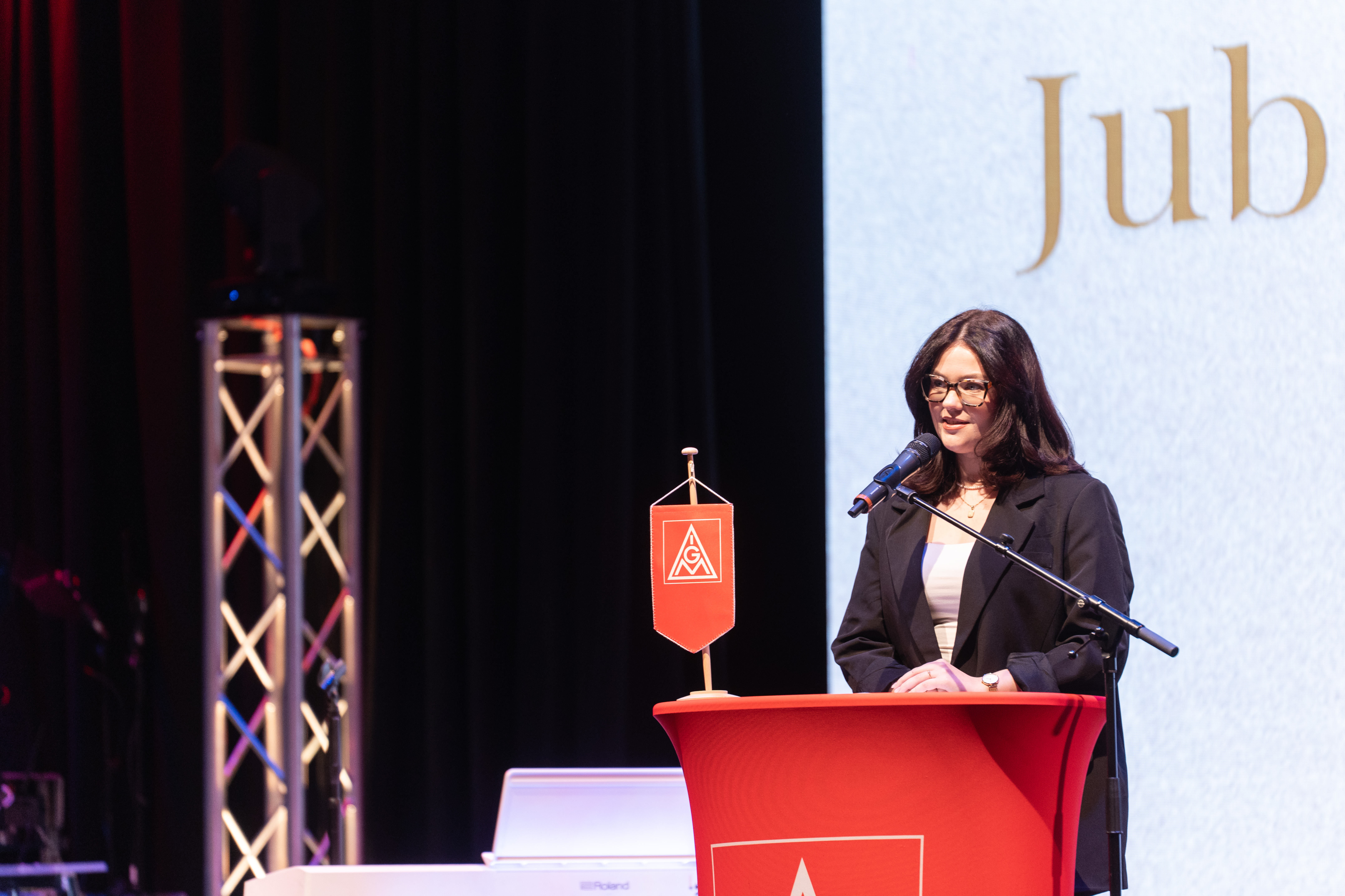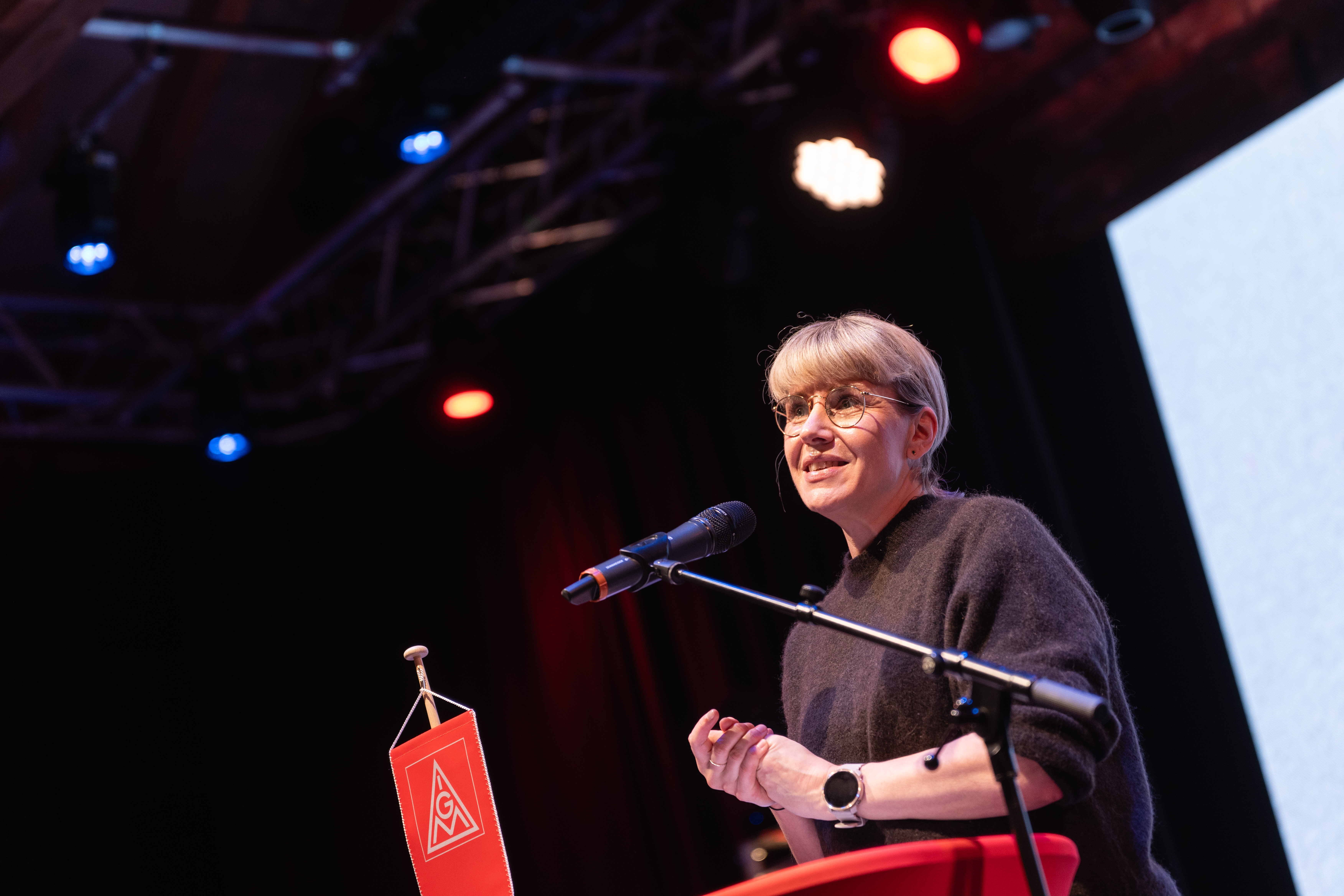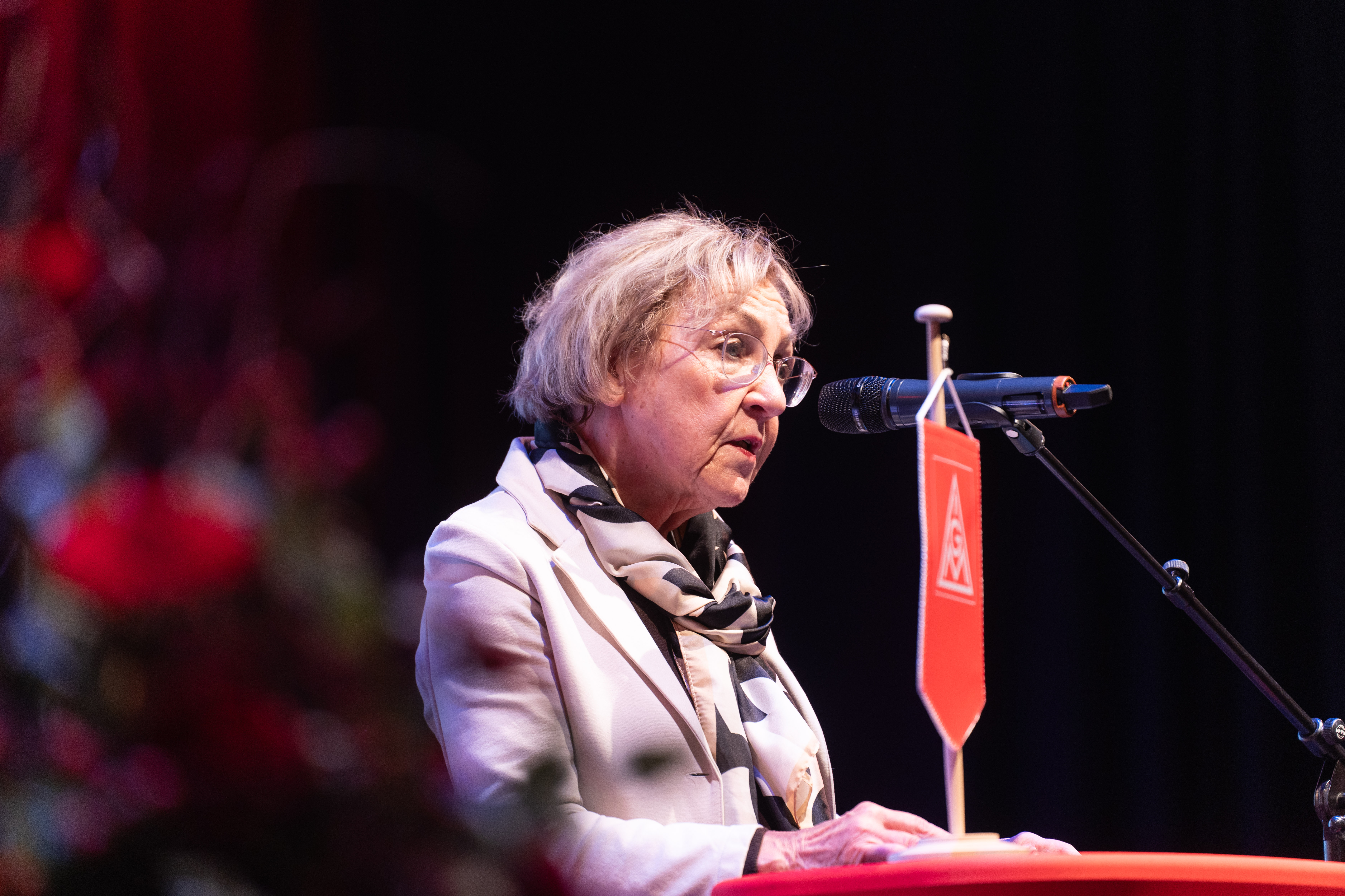Auch die IG Metall Jugend brachte sich ein: In einer kurzen Würdigung sprach Marie Semleit einige Worte an die Jubilare. Sie dankte den langjährigen Mitgliedern dafür, dass ihr Engagement und ihre Beharrlichkeit die Grundlagen geschaffen haben, auf denen junge Kolleginnen und Kollegen heute aufbauen.