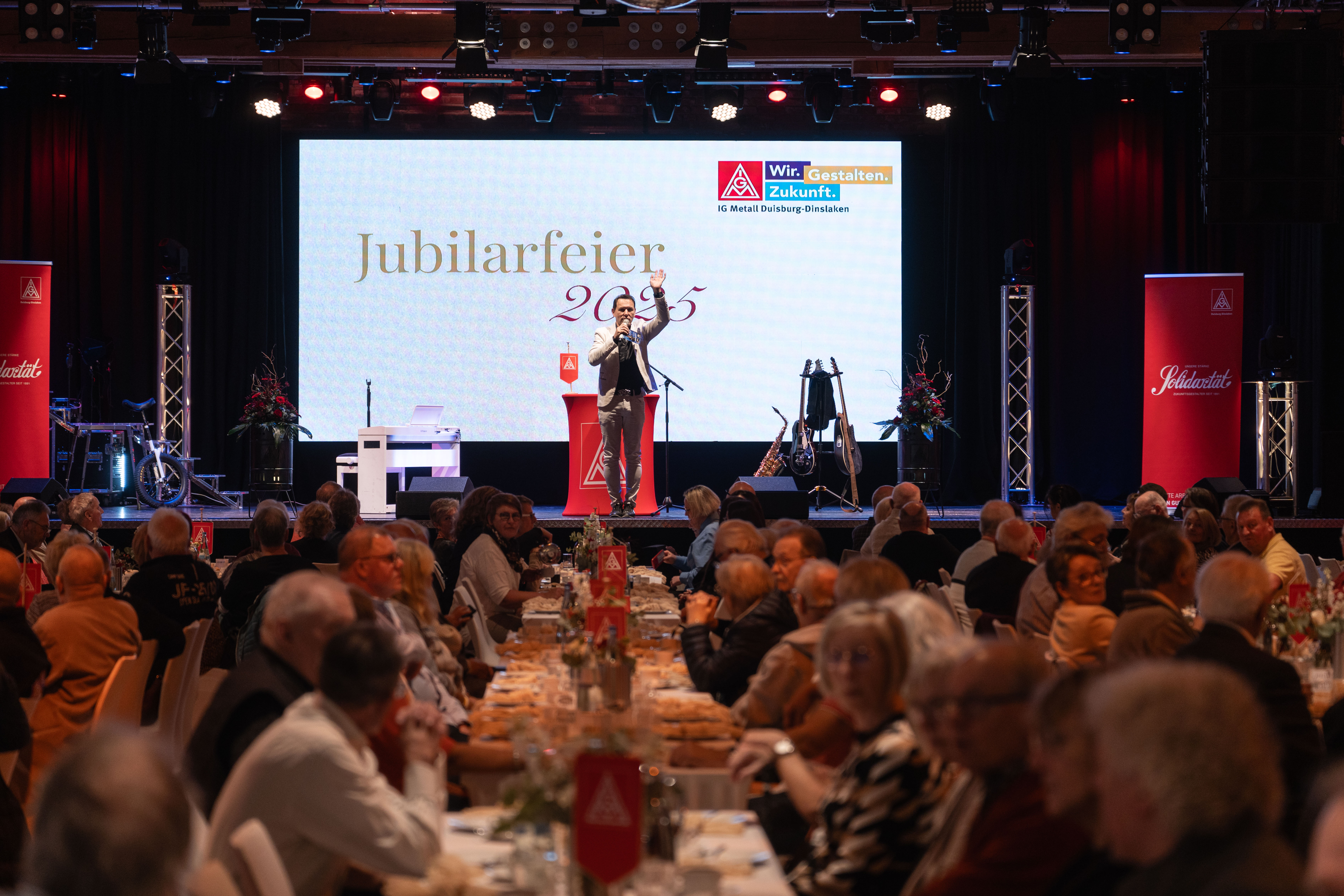 Am 12. November 2025 ehrte die IG Metall Duisburg-Dinslaken im festlich geschmückten Steinhof 714 langjährige Mitglieder, die gemeinsam auf beeindruckende 32.460 Jahre Gewerkschaftszugehörigkeit zurückblicken. Die Jubilarfeier war ein emotionaler Höhepunkt des Jahres – geprägt von Dankbarkeit, Verbundenheit und vielen persönlichen Begegnungen.